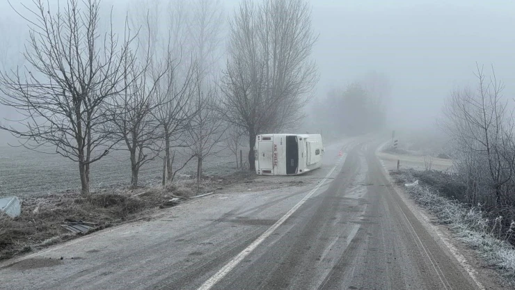 Bolu’da buzlanma nedeniyle köy yolunda devrilen Akpiliç firmasına ait işçi servisinde yaralanan 9 kişiden biri hastanede hayatını kaybetti.