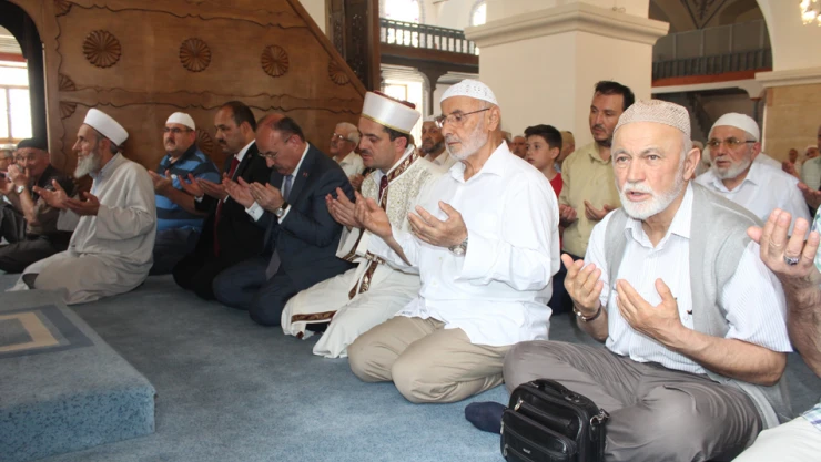 Nasrullah Camii’nde dün Cuma Namazına müteakip 15 Temmuz Şehitlerini Anma Demokrasi ve Milli Birlik Günü münasebetiyle şehitlerin ruhuna ithafen okunan 100 bin Hatm-i Şerifin duası yapıldı. Nasrullah Camii’nde düzenlenen hatim duasına Vali Yaşar Karadeniz, Kastamonu Üniversitesi Rektörü Prof. Dr. Seyit Aydın, AK Parti İl Başkanı Halil Uluay, kurum kuruluş müdürleri, STK temsilcileri ve çok sayıda vatandaş katıldı. Cuma namazının ardından camiden çıkan vatandaşlara Kastamonu Belediyesi tarafından limonata, çekme helva ve gül suyu ikram edildi. Ayrıca Nasrullah Meydanı’nda Kızılay tarafından kurulan kan toplama merkezine cemaat yoğun ilgi gösterdi.