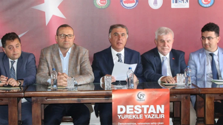 KATSO BAŞKANI SELÇUK ARSLAN; Türkiye-AB Karma İstişare Komitesi Türkiye kanadında yer alan Odaları, Sendikalar ve Meslek Örgütleri 15 Temmuz darbe girişimin yıl dönümü sebebiyle ortak basın açıklaması Ticaret ve Sanayi Odasında gerçekleşti. Ortak basın açıklamasını okuyan KATSO Başkanı Selçuk Arslan; “Türkiye'nin sivil toplumunu temsil eden; Türkiye-AB Karma İstişare Komitesi Türkiye kanadı olan; Türkiye İşçi Sendikaları Konfederasyonu (TÜRK-İŞ), Türkiye Esnaf ve Sanatkarları Konfederasyonu (TESK), Memur Sendikaları Konfederasyonu (MEMUR-SEN), HAK- İşçi Sendikaları Konfederasyonu (HAK-İŞ), Türkiye Ziraat Odaları Birliği (TZOB), Türkiye İşveren Sendikaları Konfederasyonu (TİSK), Türkiye Kamu Çalışanları Sendikaları Konfederasyonu (Türkiye KAMU-SEN), Türkiye Odalar ve Borsalar Birliği (TOBB) olarak buradayız. Bu masada oturan demokrasi sevdalısı kurumlar olarak, bu ortak açıklamayı 81 ilde aynı anda yapıyoruz. Tarihimizin en zor günlerinden biri olan 15 Temmuz'un yıldönümüne giriyoruz. İki hafta boyunca, farklı etkinliklerle, hazırladığımız afişlerle ülkemizin tamamında 15 Temmuz ruhunu canlı tutacağız. 15 Temmuz'u unutmayacağız, unutturmayacağız. 15 Temmuz'un Türkiye için bir milat olduğuna inanıyoruz. Çünkü bu alçak saldırı, darbenin ötesinde bir işgal girişimiydi. 15 Temmuz, İstiklal Harbinden bu yana ülkemizin karşılaştığı en büyük tehlikeydi. O gece Fetullahçı terör örgütü, devleti ele geçirmeye, milleti tahakküm altına almaya kalkıştı. Darbe girişiminin asıl amacı; ülkemizi tarihimizde görülmemiş bir kaosa sürüklemek, kardeş kavgası başlatmak ve Türkiye'yi iç savaş ortamına sokmaktı. Darbe teşebbüsünün nihai amacı; Türkiye Cumhuriyetini bir daha ayağa kalkamayacak duruma düşürmekti” dedi. “İSTİHDAM REKORLARI KIRDIK” Konuşmasına devam eden Arslan; “Milletimiz darbeye karşı durarak şunu açık şekilde ilan etmiştir. Türkiye Cumhuriyeti devletini milletin iradesi dışında hiçbir güç yetmez. Bu, dünyaya örnek olacak bir tavırdır. Elbette bunun için büyük bir bedel ödedik. Darbe girişimine karşı verdiğimiz bu mücadelede, 250 vatandaşımız şehit oldu. 2 bin 301 vatandaşımız gazi oldu. Şehitlerimize Allah’tan rahmet diliyoruz. Gazilerimize şükranla anıyoruz. Milletimiz onları daima minnetle ve rahmetle anacaktır. Darbe girişimi sonrası toplum büyük bir travma yaşadı. FETÖ, yalan haberlerle yurt dışında ülkemiz aleyhine karalama kampanyaları yürüttü. Ekonomimiz de bu saldırıdan olumsuz etkilendi. Allah'a şükür, birlik ve beraberliğimiz sayesinde bunların hepsini de kısa sürede atlattık. Hükümetimizin bizlerle istişare içinde aldığı önlem ve yaptığı reformlarla hızla toparlandık. Daha darbe girişiminin üzerinden bir yıl geçmeden ekonomide yüzde 5'lik büyümeyi yakaladık. İstihdam rekorları kırdık. Bu yılın ilk altı ayında tam 1 milyon 200 bin insanımıza yeni istihdam sağladık. İhracatımızı rekor düzeyde arttırmaya başladık. Yabancı yatırımcıların güvenini yeniden kazandık. Çok açık ifade ediyoruz ki, Türkiye dünyanın en zor stres testinden başarı ile çıkmıştır. Emin olun bizim son bir yılda yaşadıklarımızı başka bir ülke yaşasaydı bir daha ayağa kalkamazdı. Ama biz dimdik ayaktayız. Böyle bir coğrafyada, en zor koşullar altında hiç kimsenin yapamayacağını yaptık. Ama rehavete kapılmayacağız. Yapacak daha çok işimiz, büyük hedeflerimiz var” diye konuştu. “15 TEMMUZ'U ASLA UNUTMAYACAĞIZ, UNUTTURMAYACAĞIZ” 15 Temmuz sonrası toparlanma sürecini tamamladığını ifade eden Arslan; “Şimdi yeni bir atılım sürecini başlatmamız gerekiyor. Ayağımızdaki prangayı çözdük, şimdi koşma zamanı. Büyümede, istihdamda, ihracatta yeni rekorlar kırmalıyız. Vatandaşlarımızın refah seviyesini daha da arttırmalı, demokratik kazanımlarımızı güçlendirerek ileriye taşımalıyız. Bütün bunlar için ortak akılla ve istişare içinde, yeni bir reform süreci başlatmalıyız. Buradan yurt dışındaki dostlarımıza da sesleniyoruz. Aldığı yaraları saran milletimiz, bu büyük demokrasi sınavının birinci yılında bütün dostlarını yanında görmeyi arzulamaktadır. 15 Temmuz ruhu demokrasinin sigortasıdır. Dostlarımızı iftira kampanyalarına değil, gerçeklere kulak vermeye, buna göre tavır almaya davet ediyoruz. FETÖ ile mücadelede dost ve müttefik devletlerin de desteklerini bekliyoruz. Kaynağı ne olursa olsun darbe ve terör bir insanlık suçudur. Ancak birlikte çalışırsak daha iyi bir gelecek inşa edebiliriz. Bizler ülkemiz ve milletimiz için şimdi daha büyük bir azimle çalışacak ve Türkiye'yi büyük hedeflerine taşıyacağız. Üzerine basarak bir kez daha ifade ediyoruz: Türkiye'nin sivil toplumu olarak, 15 Temmuz'u asla unutmayacağız, unutturmayacağız. Ülkemizin geleceğini inşa ederken yaşadıklarımızdan aldığımız dersler bize ışık olacak. Biz bu ülkenin geleceğinden umutluyuz. Gücümüz milli irade, hedefimiz büyük Türkiye” ifadelerine yer verdi.
