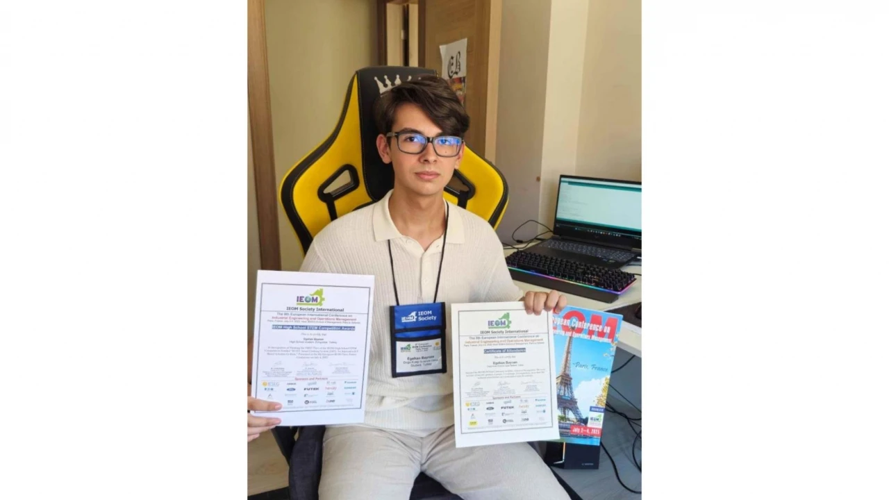 Karadeniz'in Ereğli ilçesinde 16 yaşındaki Egehan Bayram, Fransa'nın başkenti Paris'te düzenlenen 8. Avrupa Endüstri Mühendisleri ve Operasyon Yönetimi Konferansı'nda geliştirdiği Yapay Zek Destekli Giyilebilir Bebek Kıyafeti projesiyle dünya birincisi oldu.