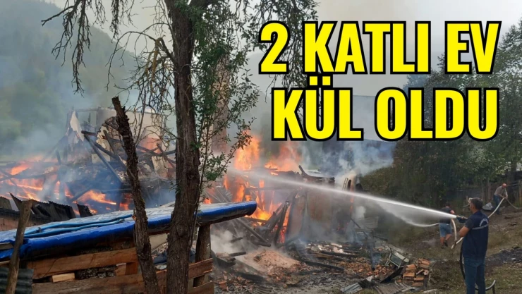 Kastamonu'nun Azdavay ilçesinde çıkan yangında 2 katlı ahşap ev ve samanlık kullanılamaz hale geldi.