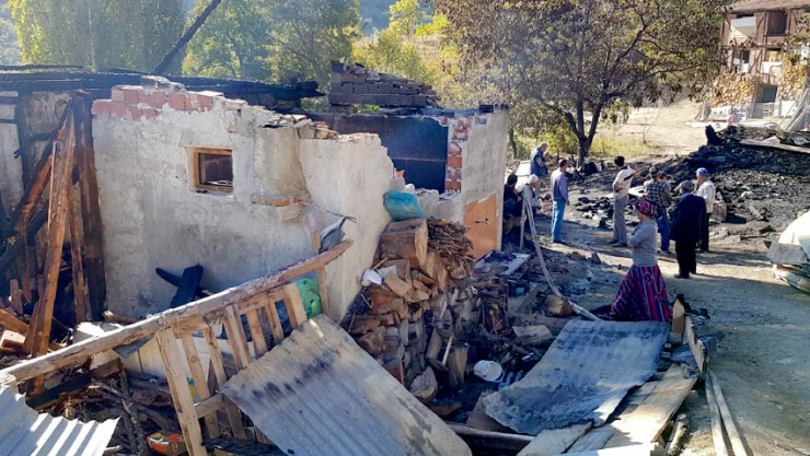 2 katlı ev ve samanlık yandı, ev sahipleri yaralandı