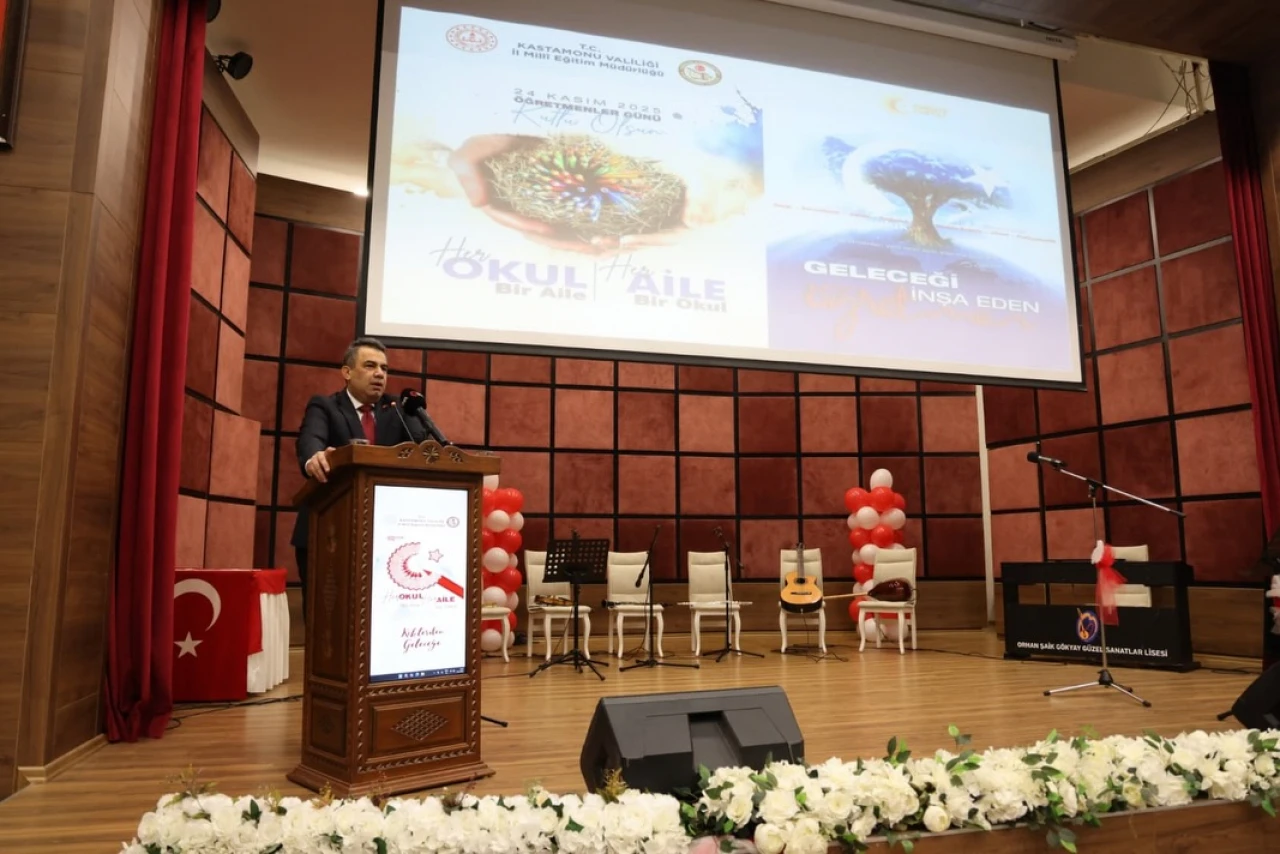 Vali Meftun Dallı, programda yaptığı konuşmasında “Değerli protokolümüz, kıymetli öğretmenlerimiz, mesai arkadaşlarımız, sevgili öğrenciler ve kıymetli misafirler; hepinizi saygıyla selamlayarak tüm öğretmenlerimizin 24 Kasım Öğretmenler Günü’nü kutluyorum. Başöğretmen Mustafa Kemal Atatürk başta olmak üzere ebediyete irtihal eden tüm öğretmenlerimizi rahmet ve minnetle anıyor, emekli ve görevdeki öğretmenlerimize sağlık ve başarı diliyorum. Her Öğretmenler Günü’nde olduğu gibi hayatımı şekillendiren iki öğretmenimden bahsetmek istiyorum. Çünkü neredeyse her başarı hikâyesinin arkasında bir öğretmenin dokunuşu vardır. Ben Sinop’un Boyabat ilçesine bağlı Paşalıoğlu köyünde dünyaya geldim. 1960’lı yıllarda yolun olmadığı, öğretmenin köyde yılda sadece birkaç ay kalabildiği bir ortamda ilkokula başladım. İlk iki yıl böyle geçince babamın gayretiyle İstanbul’a, halamın yanına gönderildim ve Eyüp’te İslambey İlkokulu’na kaydoldum.