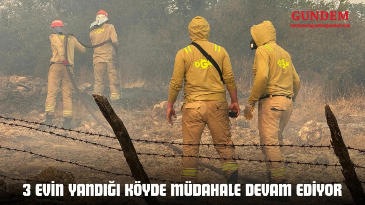 Kastamonu'nun Araç ilçesinde ormanlık alanda çıkan yangının sıçradığı köyde 1'i metruk 3 ev yandı. Ekipler köydeki diğer evlere yangının sıçramaması için müdahalesini sürdürüyor.