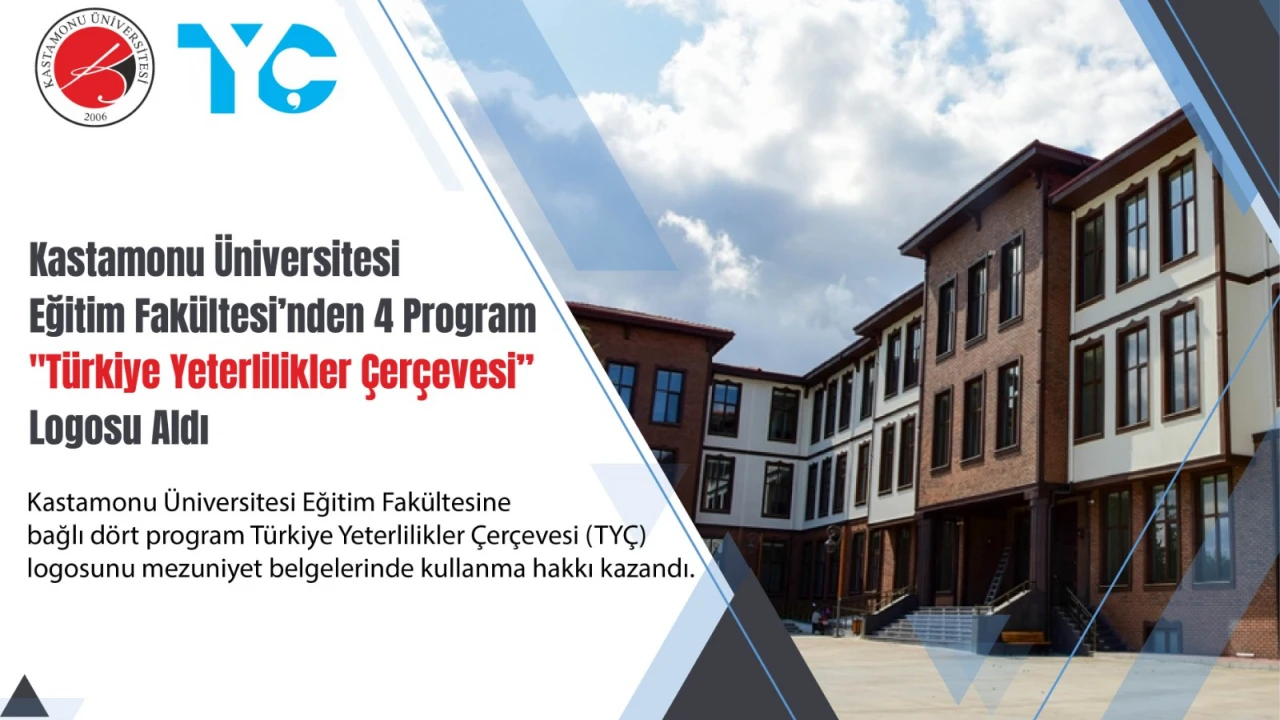 Kastamonu Üniversitesi Eğitim Fakültesi’ne bağlı dört program, 24 Ekim 2025 tarihinde gerçekleştirilen 51’inci Türkiye Yeterlilikler Çerçevesi (TYÇ) Kurulu Toplantısı’nda alınan karar doğrultusunda, mezuniyet belgelerinde TYÇ logosunu kullanma hakkı kazandı.