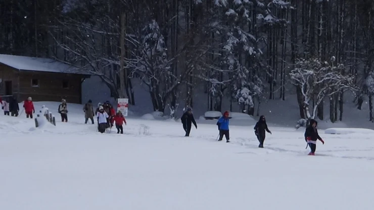 Bolu’da geçtiğimiz 5 gün boyunca yoğun kar yağışı etkili oldu. Kar yağışının etkili olduğu Abant Gölü Milli Parkı bölgesinde 30 trekking ekibi doğa yürüyüşü düzenledi. Kar yağışına aldırış etmeden 790 rakımda yürüyüşe başlayan grup kalan 12 kilometrelik parkuru kar kalınlığının 50 santimetreye ulaştığı bölgede gerçekleştirdi. Yaklaşık 4,5 saat süren yürüyüşte doğaseverler unutulmaz anlar yaşadı. Grup Başkanı Uğur Midiliç, "Mudurnu yolu üzerinden ekibimizle Abant Gölü kenarından indik. 8 kilometrelik göl çevresinde yürüdükten sonra yürüyüşü tamamlayacağız. Doğada olmak her hafta başka bir yerlerde yürüyüş yapmak güzel. Doğayı seviyoruz" dedi.