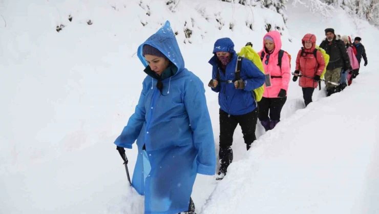 Bolu’da 23 doğasever, kar kalınlığının 70 santimetreyi aştığı 9 kilometrelik orman parkurunda yürüdü.