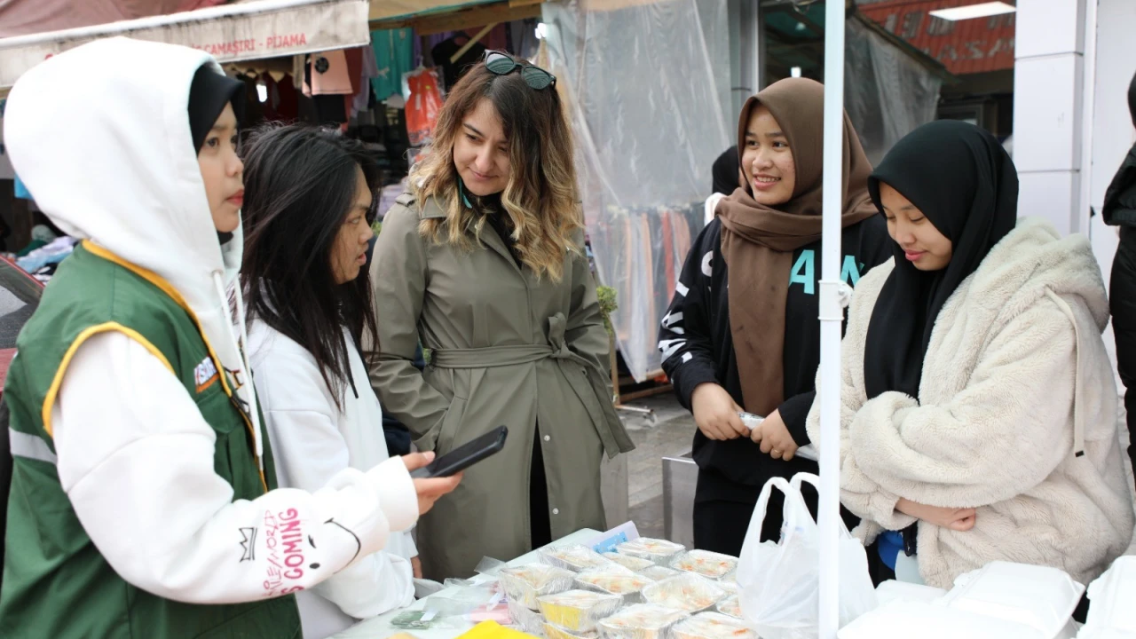 Bartın Üniversitesinin (BARÜ) Endonezyalı öğrencileri kendi kültürlerine ait ürünleri kent merkezinde kurulan “Galla Pazarı”nda satarak gelirini depremzedelere bağışladı.