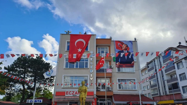İlçede bayram dolayısıyla sokaklar ve belediye binası bayraklarla donatıldı.