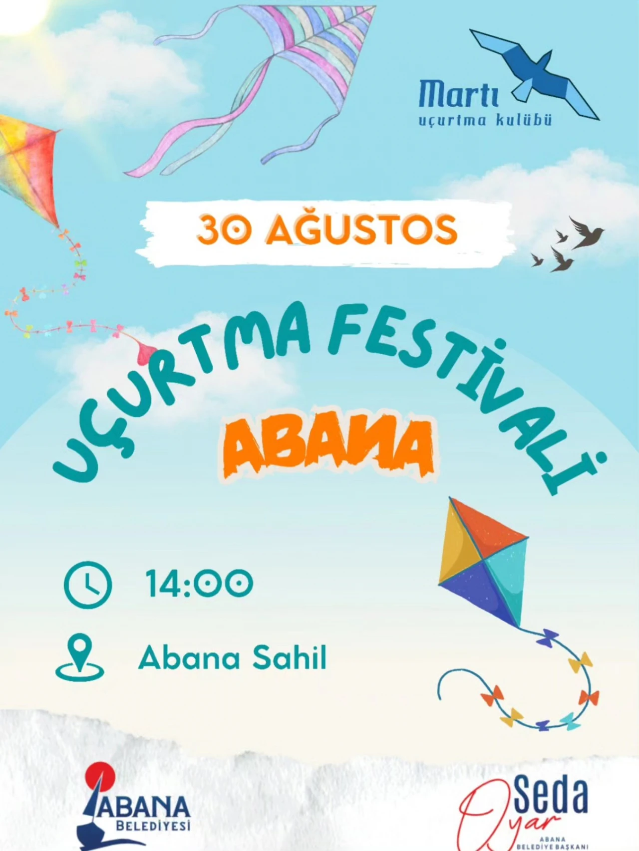 Abana Belediyesi ve Martı Uçurtma Kulübü iş birliğiyle düzenlenen Uçurtma Festivali, 30 Ağustos'ta Abana sahilinde gerçekleştirilecek.