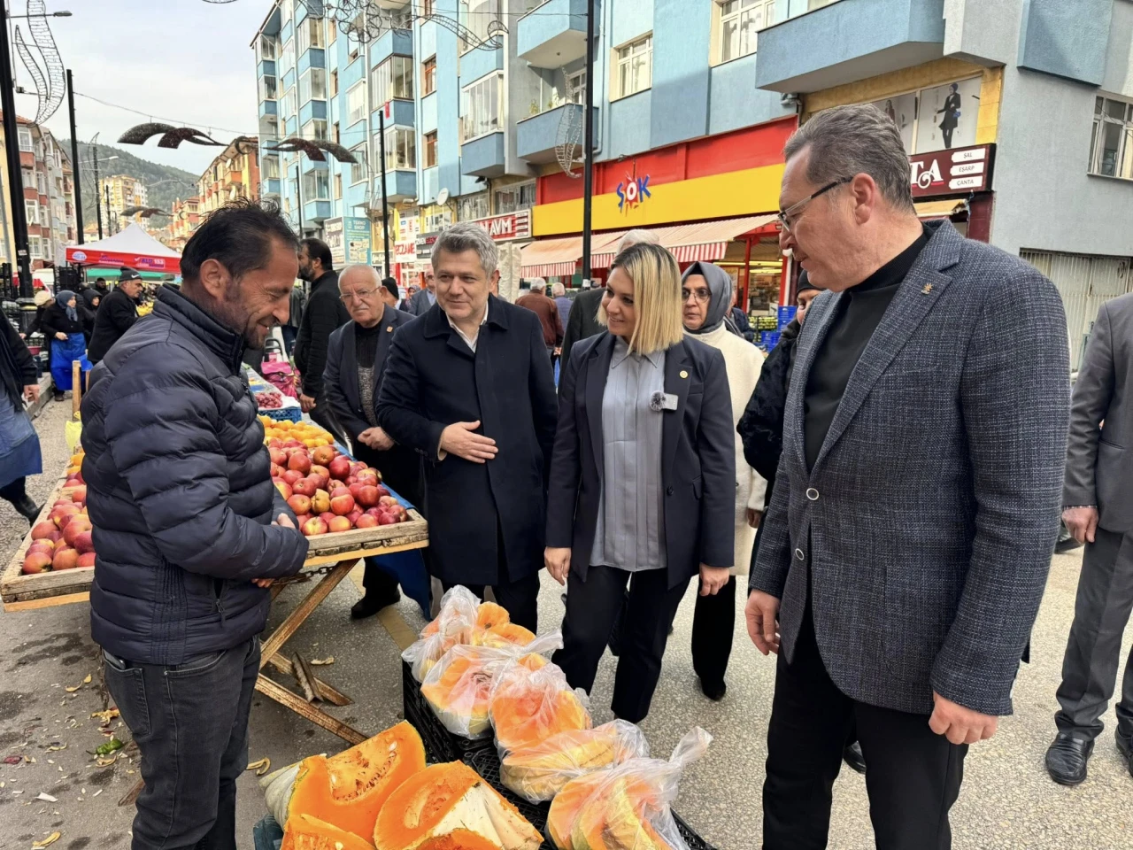 AK Parti Kastamonu İl Başkanı Ahmet Sevgilioğlu ve AK Parti Kastamonu Milletvekili Serap Ekmekci, teşkilat üyeleriyle birlikte Kastamonu Salı Pazarı'nda esnaf ve vatandaşlarla bir araya geldi.