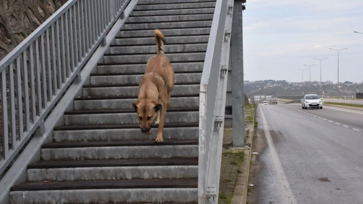 Sinop Üniversitesi İlahiyat Fakültesi mevkiinde bulunan üst geçidi kullanan sokak köpeğinin akıllı hareketi görenleri şaşkına çevirdi.