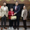 Kastamonu’nun ev sahipliği yaptığı İller Arası Boks Şampiyonası’na katılarak altın madalya alan öğrenci Ali Alptuğ Coşkun, öğretmeni Esin Al Tekelioğlu, antrenörü Eldar Elizade ve ailesi eşliğinde İl Millî Eğitim Müdürü Hasan Gümüş’ü makamında ziyaret etti.