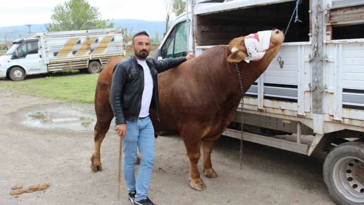 Çorum'da uzun yıllardır besicilik yapan vatandaşın özenle beslediği 1 ton 150 kilogram ağırlığındaki 'Paşa' 380 bin TL'ye alıcısını bekliyor.