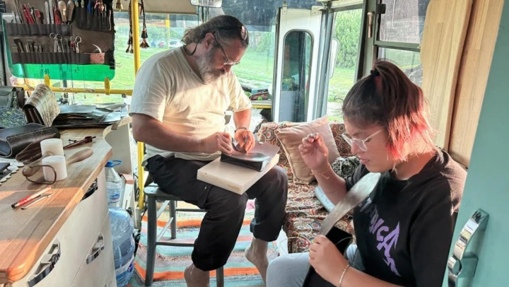 Karavanın birçok yerini kendilerinin yaptığını belirten Ömer Aydoğan, “Çünkü sadece karavan olarak değil, hem atölye hem karavan hem de yaşam alanı olarak planladık. Gezerek üretimde yapabileceğimiz şekilde hazırladık. Mutfak, yatak odası, banyoyu arka tarafa tasarladık. Ön tarafa da atölye, atölyenin tezgahı, derilerimiz ve onları koyabileceğimiz bölümler. Bu şekilde tasarladık. Burada yaptığımız ürünleri birebir gittiğimiz şehirlerde halk ile bütünleşerek satışını ya da hediyeleşmeyi yaparken aynı zamanda yerel yöneticilerle de görüşerek pazaryerlerinde tezgah açarak satış yapabilmeyi umuyoruz. Kastamonu'da pazaryerinde tezgahımızı açtık ve burada satışımızı yaptık” şeklinde konuştu.