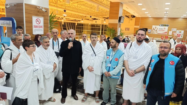 Müftü Derin'in yaptığı duanın ardından umreciler, aileleriyle vedalaşarak kutsal topraklara doğru yola çıktı.