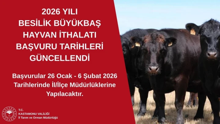 Bu kapsamda, 2026 yılı besilik hayvan ithalatı başvurularının 26 Ocak–6 Şubat 2026 tarihleri arasında il ve ilçe Tarım ve Orman Müdürlükleri aracılığıyla alınacağı ve sistem üzerinden kayıt altına alınacağı kaydedildi.