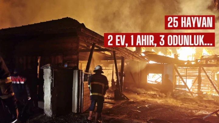 Kastamonu'da çıkan yangında 25 hayvan ve 2 ev, 3 odunluk ve 1 ahır yanarak kül oldu.
