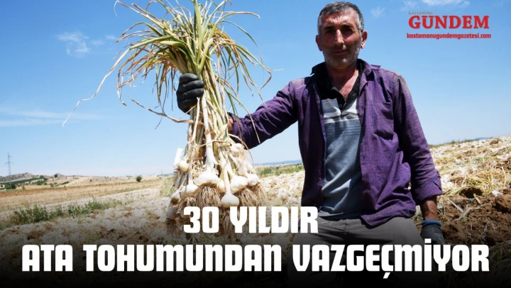 Taşköprü'de ata tohumundan vazgeçmeyen sarımsak üreticisi Hasan Kayıkcı, 30 yıldır aynı tohumu kullanıyor.