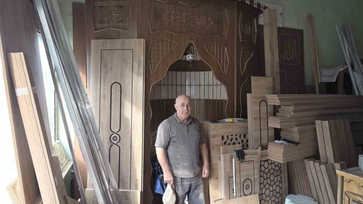 Zonguldak'ın Alaplı ilçesinde 50 yıldır mobilya imalatı yapan 65 yaşındaki Sezgin Gülçiçek, bugüne kadar 63 camiye mihrap, minber ve kürsü yaptı.