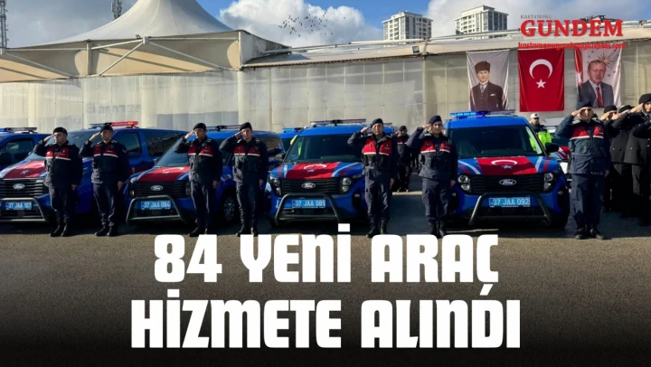 İl Emniyet Müdürlüğü ile Kastamonu İl Jandarma Komutanlığı emrinde kullanılmak üzere tahsis edilen 84 araç, düzenlenen törenle hizmete alındı.