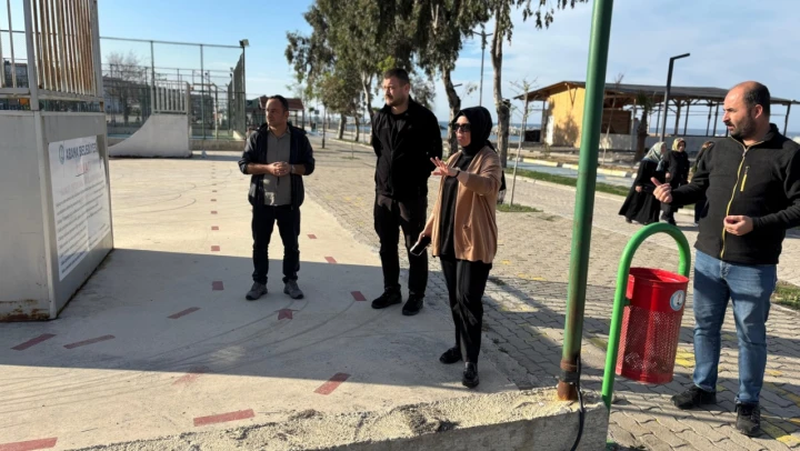 'Belediye Başkanımız Sayın Seda Oyar, yapımı devam etmekte olan parkları ve halı sahaları yerinde incelemelerde bulundular. Vatandaşlarımızla sohbet ederek, talep ve isteklerini dinlediler.'