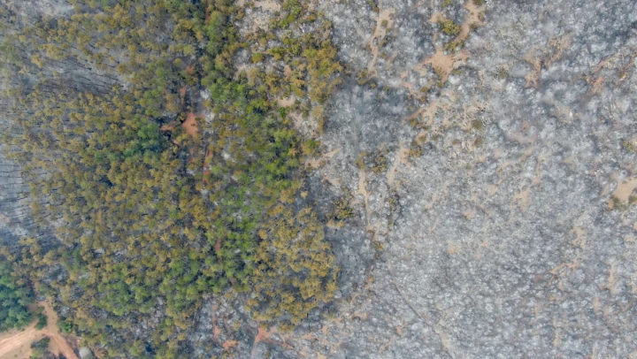 Kastamonu'nun Araç ilçesindeki orman yangının kontrol altına alınmasının ardından ortaya çıkan acı manzara havadan görüntülendi.