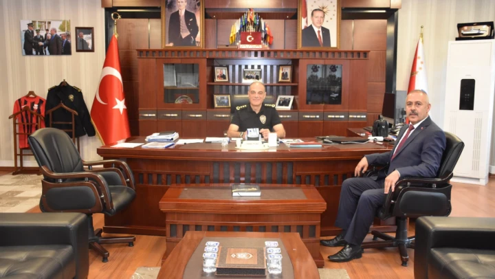 Kastamonu İl Emniyet Müdürü Tamer Taş'a hayırlı olsun ziyaretleri sürüyor. Bu kapsamda Ağlı Belediye Başkanı Bülent Ergin, İl Emniyet Müdürü Tamer Taş'ı makamında ziyaret etti.