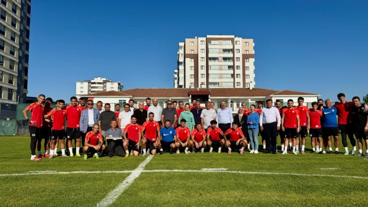 Gerçekleştirdiği antrenmanı ziyaret eden heyet, pazar günü oynanacak karşılaşma öncesinde teknik ekip ve futbolcularla bir araya gelerek başarı dileklerini iletti.