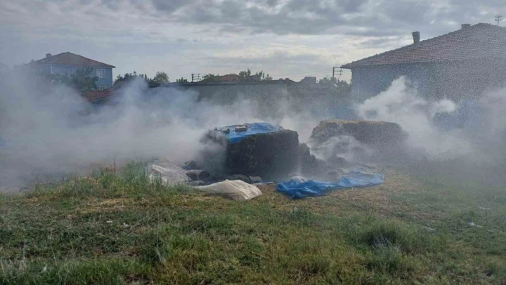 Çorum'un Alaca ilçesinde çıkan yangında, çok sayıda saman balyası yandı.