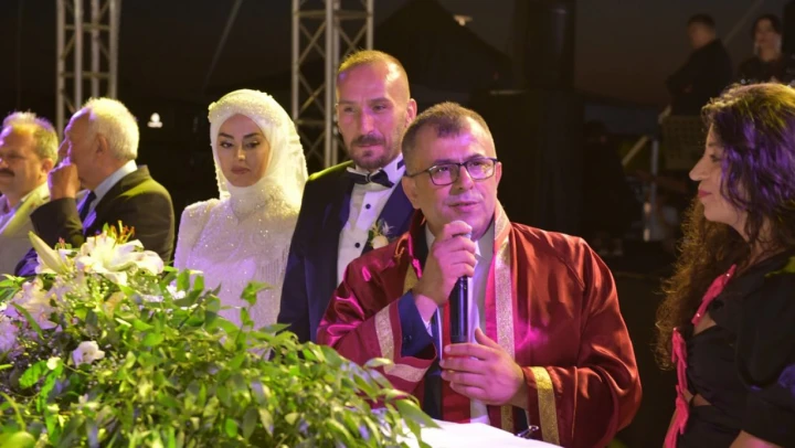 Çiftin nikahını Taşköprü Belediye Başkanı Abdullah Çatal kıyarken, çiftin nikah şahitliklerini eski Bakan Murat Başesgioğlu, AK Parti Milletvekili Halil Uluay, CHP Milletvekili Hasan Baltacı, Belediye Başkanı Opr. Dr. Galip Vidinlioğlu, Taşköprü Kaymakamı Bekir Özen, Güven Hastanesi Genel Koordinatörü Haluk Yıldız, Musa Sıvacıoğlu, Sağlık Bilimleri Üniversitesi Rektörü Kemalettin Aydın, Ergün Aydoğan, Durdu Mehmet Kastal, Saffet Kaya, Nurettin Akman, Kürşat Yılmaz, Taşköprü Müftüsü Hasan Yozgat, Ümit Şafak ve Burcu Öncel yaptılar.