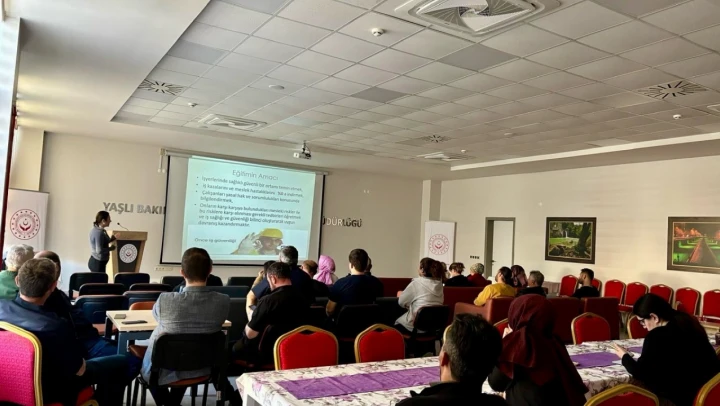 6331 Sayılı iş sağlığı ve güvenliği kanunu kapsamında, Güldal Akşit Huzurevi Yaşlı Bakım ve Rehabilitasyon Merkezi Müdürlüğü ve Çocuk Evleri Koordinasyon Merkezi Müdürlüğü'nde görevli personele 'İş Sağlığı ve Güvenliği Temel Eğitimi' verildi.