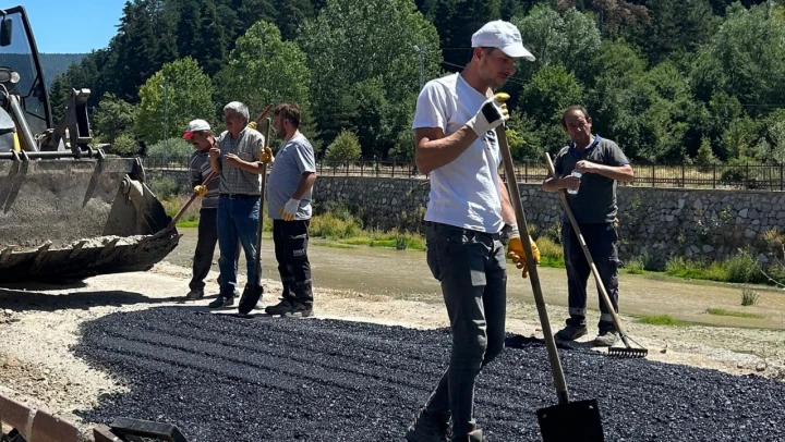Azdavay Belediyesi, düğün salonu ile Âşıklar Köprüsü arasında yer alan yürüyüş yolunda asfalt kaplama çalışmalarını başlattı.