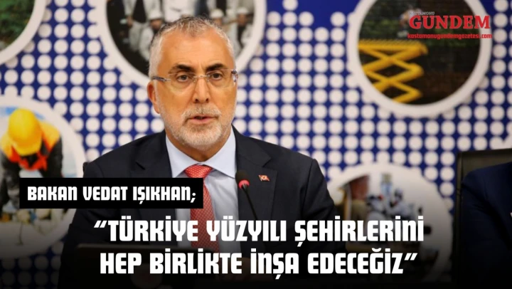 Toplantıda konuşan Işıkhan, 'Biliyorsunuz, göreve geldiğimiz günden bu yana, ülkemizi Saygıdeğer Cumhurbaşkanımızın vizyonu olan Türkiye Yüzyılı'na hazırlama hedefiyle, çalışma hayatı paydaşlarıyla, sizlerle bir arada olmaya devam ediyoruz. Bakanlık olarak sahadaki icra noktasında çalışma hayatının temel unsurları olarak gördüğümüz, özellikle yerelde faaliyet gösteren, şehrin kalkınmasına katkıda bulunan meslek kuruluşlarıyla, odalarla ve derneklerle bir araya gelmeyi, daima dirsek teması içerisinde olmayı çok önemsiyoruz. Çalışma hayatının, istişarenin ve ortak hareket kültürünün en yoğun yaşandığı alanlardan bir tanesi olması hasebiyle, paydaşlar olarak bizler birbirimizin sözlerine ne kadar kulak verirsek bu büyük mekanizmayı da o derece başarıyla işletmiş oluruz. Katılımcı sosyal devlet anlayışımızın gerektirdiği şekilde bizler bugüne kadar milletimizden gelen talep ve istekleri hiçbir kulak arkası etmedik. Çalışanlarımıza, işverenlerimize, sendikalarımıza, sivil toplum kuruluşlarımıza hiçbir zaman kapımızı kapatmadık. Gerek yapısal, gerekse geçici sorunlarımızın ortak akıl ve istişare ile çözüleceğine inandık. Gerek yapısal gerek geçici sorunlarımızın ortak akıl ve istişare ile çözüleceğine yürekten inandık. İşçimizden işverenimize kadar yediden yetmişe her bir vatandaşımızın yaşam standartlarını, çalışma koşullarını ve sosyal güvenlik geleceğini teminat altına almak için, atılabilecek her türlü adımı, tüm riskleri göze alarak attık, atmaya da devam ediyoruz. Ülkemizin içerisinden geçtiği en zor zamanlarda ellerini ovuşturarak yıkılmamızı bekleyenlere, karşılaştığımız her engelde, 'Türkiye bu badireyi asla atlatamaz' diyenlere inat her seferinde küllerimizden yeniden doğmasını bildik. Afetler, salgınlar, darbeler gördük, yine de pes etmedik, eskisinden daha güçlü bir şekilde ayağa kalktık. Bu bağlamda, Türkiye'nin son 23 yılı, hep daha iyisini, hep daha ilerisini hedefleyerek ve hamdolsun ki bu hedefleri de bir bir gerçekleştirerek geçti. Yer altı ve yer üstü kaynaklarımızın faaliyete geçirilmesiyle, savunma sanayi başta olmak üzere yerli ve milli üretim gücümüzün artmasıyla her geçen gün daha da ivme kazanan kalkınma sürecimiz çalışma hayatına da olumlu şekilde yansımaya devam ediyor. Bu anlamda Türkiye yatırım, istihdam, üretim ve ihracat ekseninde yükselişini kesintisiz bir şekilde sürdürüyor' dedi.