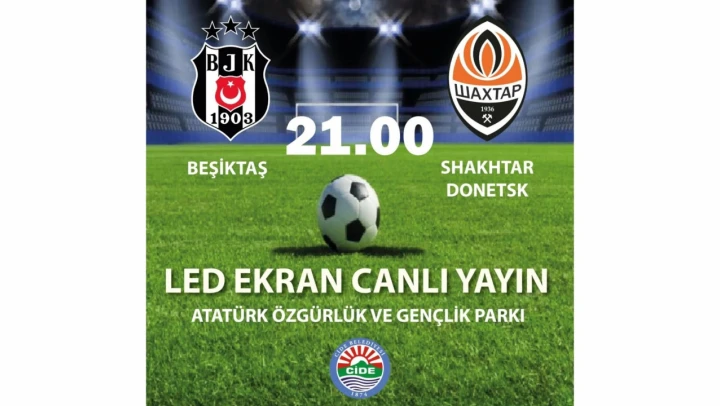 Cide Belediyesi, Bu akşam saat 21.00'da Beşiktaş ve Shakhtar Donetsk arasında yapılacak futbol karşılaşmasının, sahilde bulunan Atatürk Özgürlük ve Gençlik Parkı'nda led ekrandan canlı olarak izlenebileceğini duyurdu.