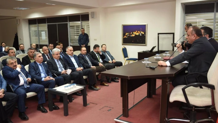 KATSO Başkanı Selçuk Arslan, KESOB Başkanı Dursun Ergin'in yanı sıra ilçe belediye başkanlarının katılım gösterdiği toplantıda fuara katılımı arttıracak öneri ve talepler üzerinde fikir alışverişinde bulunuldu.