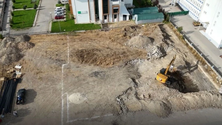 Öte yandan, spor salonun yapılacağı alandaki çalışmalar dron ile görüntülendi.
