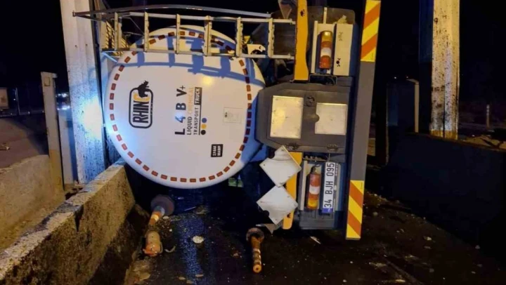 Bolu'da Tanker Gişelere Çarpıp Devrildi: 1 Yaralı