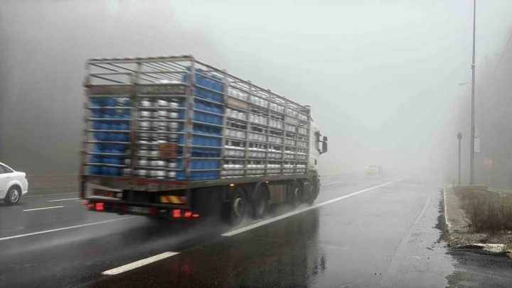 Bolu Dağı'nda etkili olan yoğun sis ve sağanak sebebiyle görüş mesafesi yer yer 30 metreye kadar düştü.