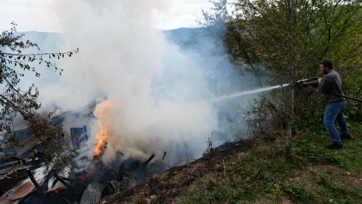 Kastamonu'nun Bozkurt ilçesine bağlı Kocaçam Köyü'nde, ahşap bir evde bilinmeyen nedenle yangın çıktı.