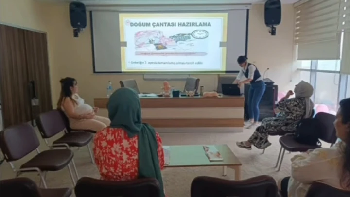 Eğitimlerde, anne adaylarına yönelik çeşitli konularda bilgilendirme yapılıyor.