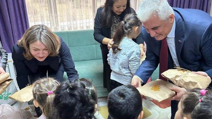 'Gönülden Gönüle El Emeği' Projesi kapsamında 'Yeni yıl hediyen benden' sloganı ile gönüllü kadınlar tarafından örülen atkı ve bereler Vali Avni Çakır'ın eşi Bahar Çakır tarafından çocuklara dağıtıldı. Bahar Çakır, çocuklara anne elinden çıkan hediyelerin verilmesinin onların duygusal gelişimlerine de katkı sağlayacağını dile getirdi. Ayrıca, bu tarz etkinliklerin, projelerin devamının gelmesi için iyi dileklerde bulundu. (Haber Servisi)