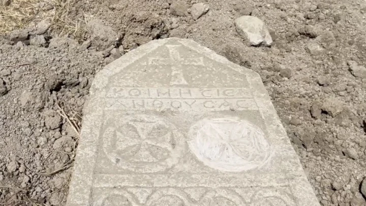 Çorum'un Alaca ilçesinde yürütülen altyapı çalışması sırasında üzerinde haç motifleri ve yazılar bulunan tarihi bir mezar taşı bulundu.