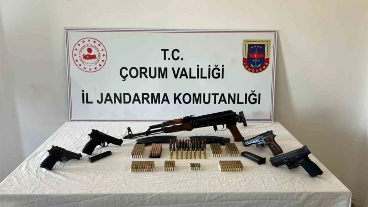 Çorum'un Alaca ilçesinde jandarma ekiplerince düzenlenen operasyonda, 1 adet kalaşnikof tüfek, 4 tabanca ve yüzlerce mermi ele geçirildi. Olayla ilgili 1 kişi tutuklandı.