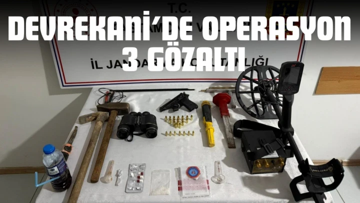 Devrekani Kaymakamlığı'ndan yapılan bilgilendirmede; 'İlçemizde yürütülen çalışmalar kapsamında; Kastamonu İl Jandarma Komutanlığı, Devrekani İlçe Jandarma Komutanlığı, KOM Şube Müdürlüğü ve NSM Şube Müdürlüğü ekiplerince izinsiz kazı ve uyuşturucu ile mücadeleye yönelik operasyon düzenlenmiştir. Operasyonda izinsiz kazı yaptıkları ve uyuşturucu madde bulundurdukları tespit edilen 3 şüpheli şahıs suçüstü yakalanmış olup, olayla ilgili adli tahkikat başlatılmıştır' denildi.