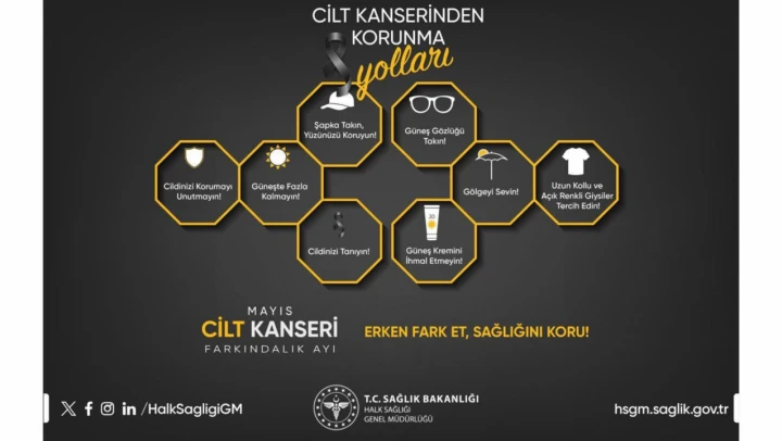 Korunma yollarına da değinen Müdürlük; 'Her ne kadar cilt kanserlerini tamamen önlemenin kesin bir yolu olmasa da, bireyler bazı korunma yollarını benimseyerek risklerini azaltabilirler. Cilt kanserinden korunmak için öneriler; açık havada güvenli güneş koruma yöntemlerini uygulayın. Koruyucu giysiler (gömlek, şapka) tercih edin. Geniş spektrumlu, yüksek koruma faktörlü güneş kremi kullanın. Güneş gözlüğü takarak gözlerinizi ve göz çevresini UV ışınlarından koruyun. Zararlı kimyasallardan uzak durun. Cildinizi düzenli olarak kontrol edin ve neyin 'normal' olduğunu öğrenin. Cilt kanserlerinin erken teşhisinde net bir rehber bulunmamakla birlikte, kişinin kendi cildini tanıması oldukça önemlidir. Bu amaçla benlerin, lekelerin, çillerin ve diğer izlerin zaman içindeki görünümünü takip etmek faydalıdır. Ayda bir kez yapılacak kendi kendine cilt muayenesi, değişikliklerin erken fark edilmesini sağlar' dedi.