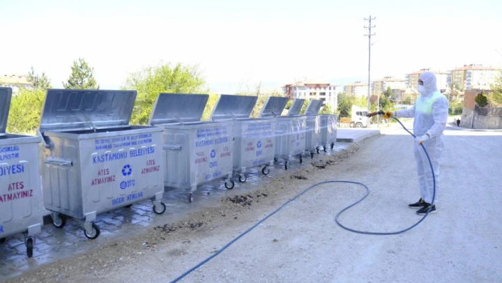 Kuzeykent Mahallesi'nde bulunan çöp konteynerlerinde çevre ve insan sağlığını korumak amacıyla larvasit uygulaması gerçekleştirilirken Belediye'den yapılan açıklamada, kent merkezinde belirlenen tüm noktalarda, kesintisiz ve planlı olarak ilaçlama çalışmalarının sürdürüleceği bildirildi.
