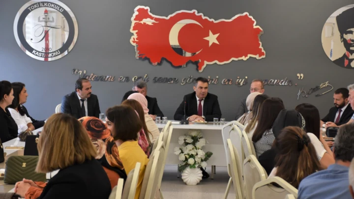 Kastamonu İl Milli Eğitim Müdürü Hasan Gümüş, İl Milli Eğitim Müdür Yardımcısı Mesut Şeker ile birlikte 2023-2024 eğitim-öğretim yılı mesleki çalışmalarının ilk gününde TOKİ İlkokulu'nda öğretmenler ve idarecileriyle bir araya geldi.