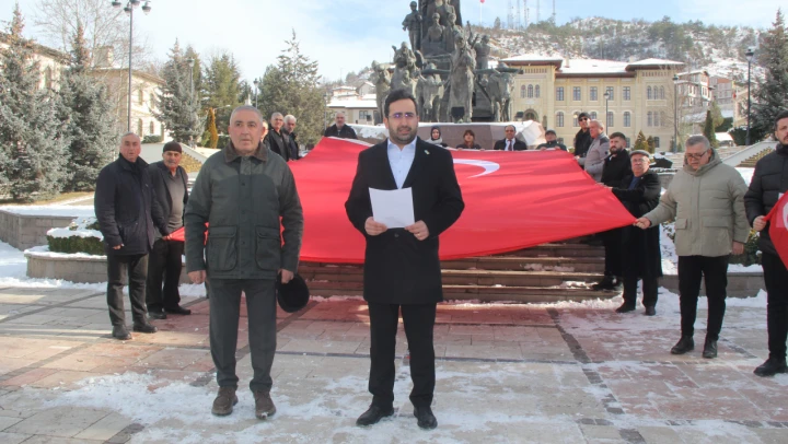 Basın açıklamasını gerçekleştiren İYİ Parti İl Başkanı Metin Yazkan; 'Türk bayrağımıza yönelik gerçekleştirilen alçak girişimi en sert şekilde kınıyoruz. Bayrağımızı indirmeye yeltenmek; bu milletin onuruna, devletimizin egemenliğine ve Cumhuriyetimizin temel değerlerine açık bir saldırıdır. Bunun adı ne protestodur ne de ifade özgürlüğüdür; bunun adı ihanettir, bunun adı alçaklıktır. Türk bayrağı; bu vatan uğruna can veren aziz şehitlerimizin kanıyla yükselmiştir. Bu bayrak yere düşmez, indirilmez! Buna cüret edenler, karşısında Türk milletinin sarsılmaz iradesini bulur. İYİ Parti, kuruluşundan bu yana terörle müzakereye, terörle pazarlığa ve terörü meşrulaştıran her türlü sürece açık ve net şekilde karşı durmuştur. Bizim durduğumuz yer bellidir: Terörle mücadele edilir, müzakere edilmez. Terörist en ağır şekilde cezalandırılır, teröriste sayın denmez! Devlet, eli kanlı örgütlerle masaya oturmaz, komisyon kurup ayağına gitmez! Gösterilen yumuşaklık sonucu bu cüreti gösterenler cezasız bırakılmaz! Türk bayrağı ve şehitlerimizin hatırası asla pazarlık konusu yapılamaz' dedi.
