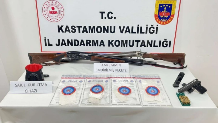 Kastamonu İl Jandarma Komutanlığı ekiplerince Taşköprü'de durdurulan araçta uyuşturucu ve silah ele geçirildi.